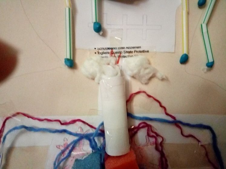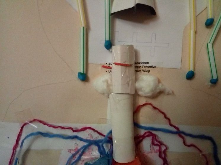 Сделали макет гортани с голосовыми связками. И тоже приклеили над трахеей.