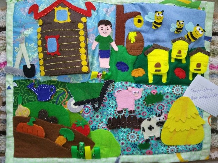 Летом был конкурс сшить что- то из выкроек Любови Комиссаровой, я решила сварганить развивающий игровой планшет «Ферма». И вот, что получилось.