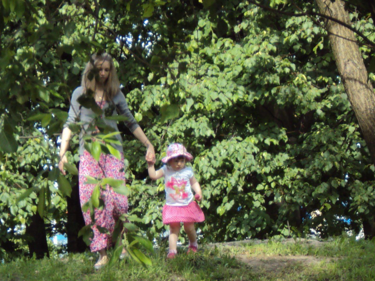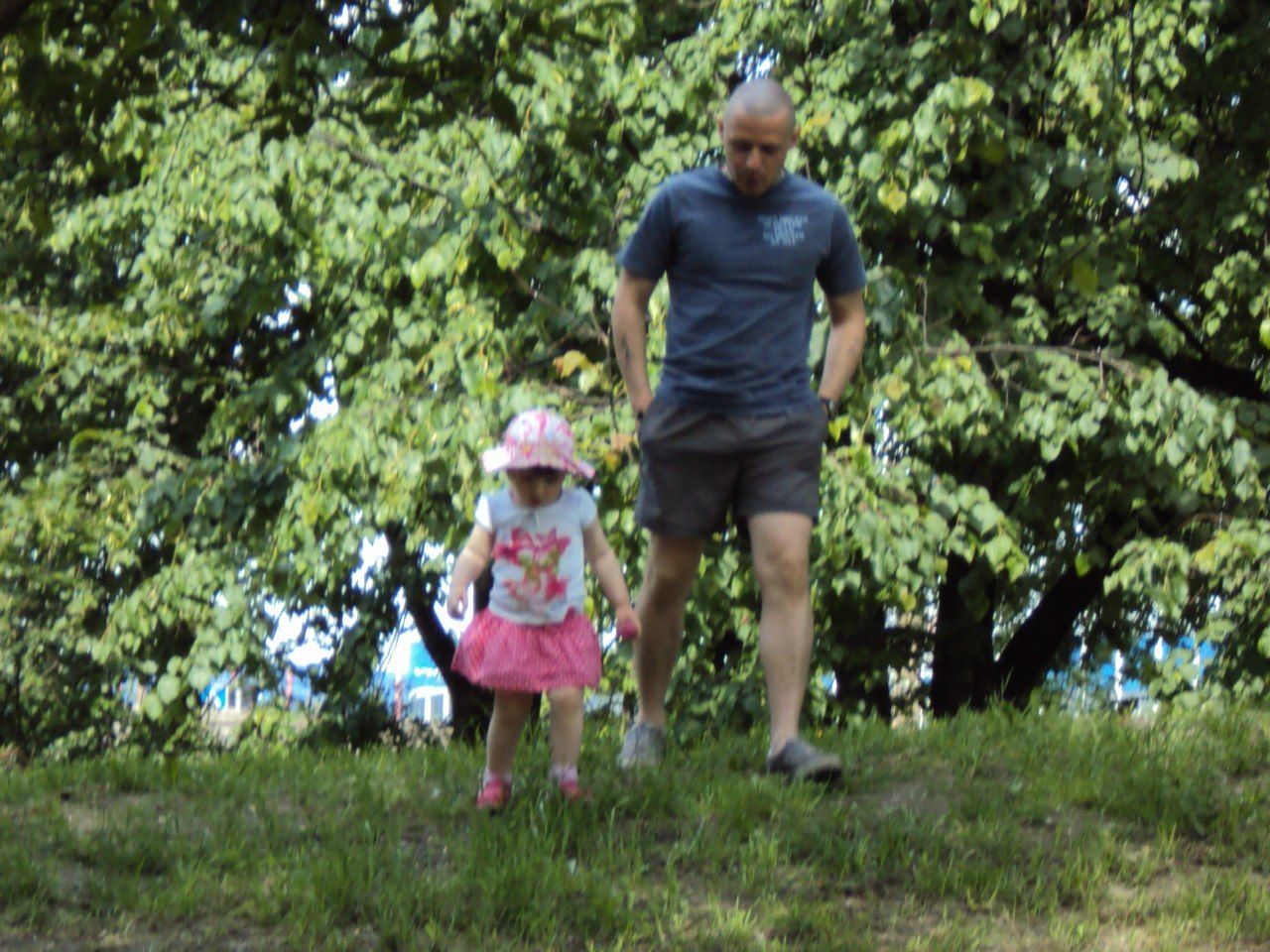я в парке решила поискать маленькие камушки… чтобы кинуть в ванную, для того, чтобы Поля по ним походила(ну типо массаж для ног)… пока я ходила с Полей и искала эти камни, муж сказал, что я херней страдаю, и надо ехать на пляж=) и от туда брать камни… а не городские=))))я выкинула найденные камни и мы пошли дальше=))) пока погонялись за Полинкой, в прятки за деревьями поиграли...=) думали измотаем ее… а не фига=) Полька в этот день была какая то не изматываемая=)