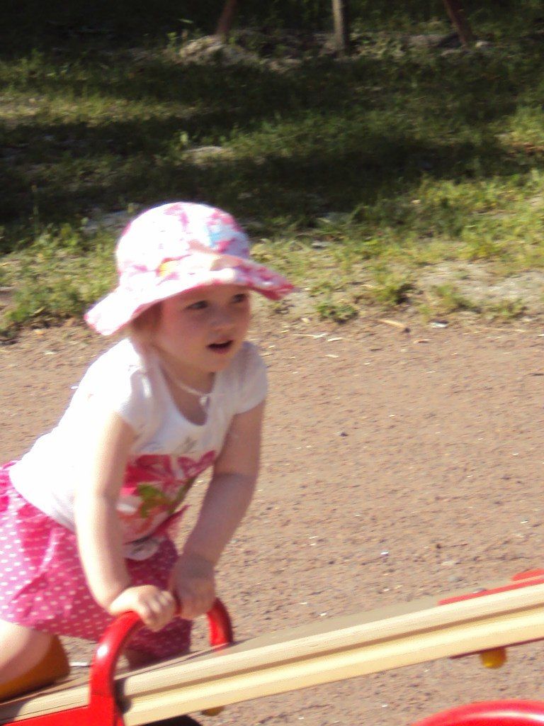 я думала там надо платить, а оказалось, он бесплатный я думала у нас в России за все берут деньги=) оказалось нет=) ну по началу Поля увидав качели побежала к ним… там и засела, дабы привыкнуть и адаптироваться =)ну и осмотреться=)