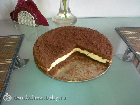 Разъемную форму диаметром 26 см. смазать маслом, высыпать чуть больше половины крошки.