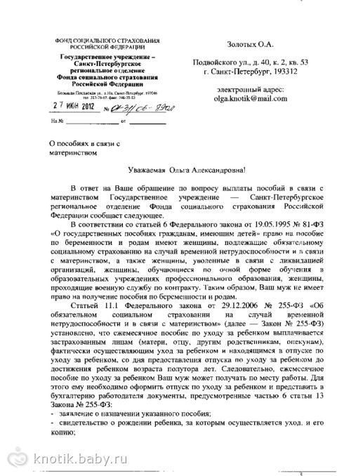 а я поняла наоборот, что цитирую: Ежемесечное пособие по уходу за ребенком Ваш муж может получать по месту работы. Для этого ему необходимо оформить отпуск по уходу за ребенком и предоставить в бухгалтерию....