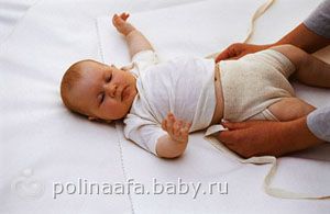 Заверните наверх трикотажный подгузник, завязки пропустите под спинкой малыша.