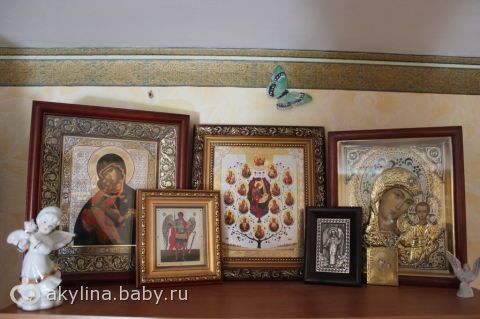 И все иконы которыми крестили моих дочерей красуются на полке