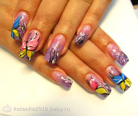 У меня были заостренные и цвет такой малиновый с золотистыми крапинками. Реально — очень красиво!!! И цветы именно выпуклые. Которые не рисуются, а делаются тоже из акрила. Летом-это восхитительно.