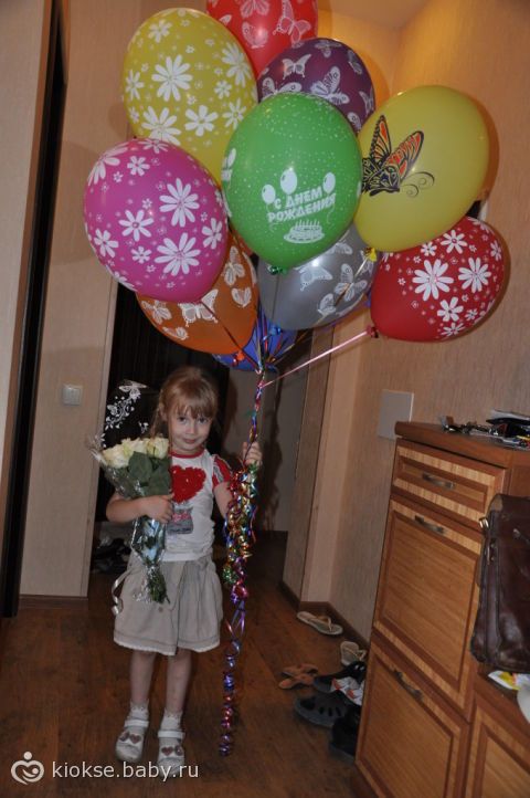 Именинница пришла с садика. Даша ее забирала и подарила связку шаров))