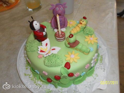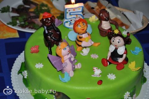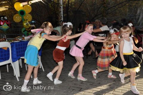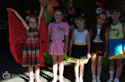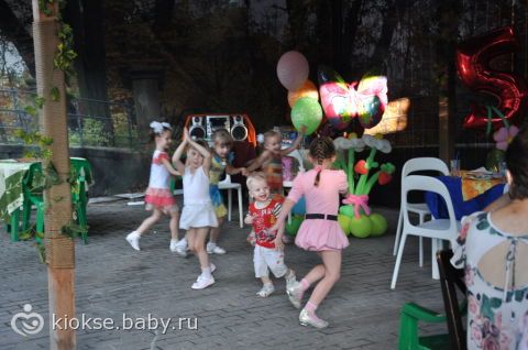 Теперь само празднование ДР. Днюха была тематическая, лето, цветы, насекомые. Я подготовила всем девочкам (у Ули были одни девчонки, всего пятеро) костюмы насекомых, написала сценарий, в нете взяла загадки про насекомых, некоторые конкурсы, все обработала и вот, что получилось. В кафешке мы были на летней площадке, нам там наши давние друзья из фирмы по организации праздников украсили площадку, короче мы были на волшебной полянке)))))