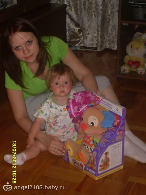 поздравляю:) у нас такой же щенок. Правда давно. Месяцев в 10 нам Наш папа подарил:) мы уже все знаем что он говорит:) здоровская игрушка