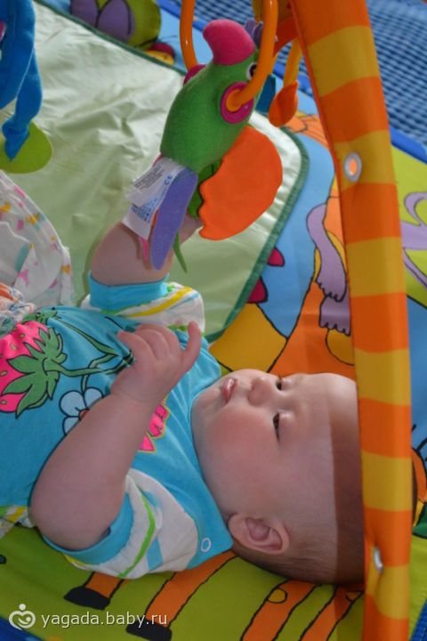 Нам 3 месяца!!! растем очень стремительно. с удивлением обнаружила, что первые вещички, купленные на вырост уже малы, многие из них одеты всего пару раз… Зато сколько мы уже умеем! И гулим, и смеемся, и совсем недавно начали проявлять интерес к игрушкам! Так смешно, пытается затащить в рот все, что оказывается в руках, все абсолютно надо распробывать, будь то мамина рука, подол собственного платьеца или погремушка..)) Вобщем, начинам активно познавать мир!