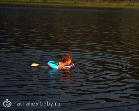 Я придумала одну фишку: Снимаю с него круг, кидаю его подальше и плывем за ним))) Андрею эта игра пришлась по душе)