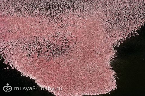 Скопления фламинго на водах озера в Кении