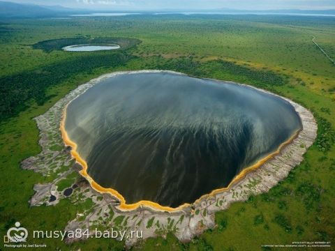 Этот кратер с одним из самых глубоких в мире озер — до 1500 метров в глубину находится в Уганде, на территории Национального парка королевы Елизаветы.