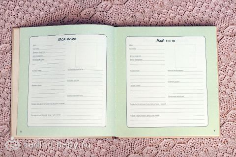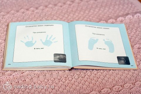 В ней много места для ваших фото, для записей достижений, для пожеланий. Есть чудесные конвертики, для того, чтобы сохранить волосики малыша и важные мелочи, будь то бирочка из роддома или фото с УЗИ. Эта книжка займет достойное место в каждом доме и будет чудесным подарком для молодых родителей, а впоследствии и самого малыша!