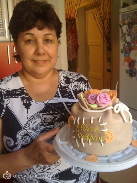 Она у меня кассир — вот и тортик ей с денюшками)))
