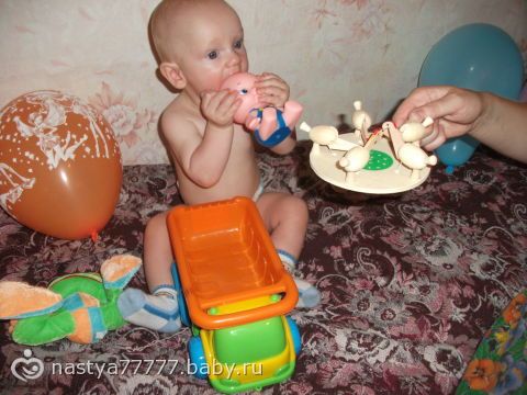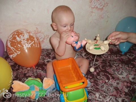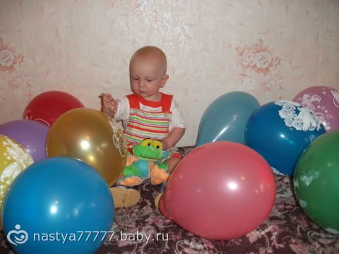 Мы сегодня отметили по семейному это событие, надули сынуле шариков, но он их не оценил, начал ковырять и я побоялась что шарики лопнут у него в руках повесила их на стену потом