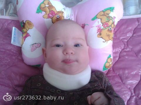 но я как заметила, так сразу начала ей голову в другую сторону поворачивать когда засыпала, игрушки ложить, а подлаживать что-то не получалось, — она все умудрялась отодвинуть. Сейчас голову хорошо поворачивает в обе стороны, но когда приподнимаю, за держит ее наискосок :( это как-то валика не сильно исправишь. к тому же нормально она спит только на животе. Но думаю воротник носить будем…