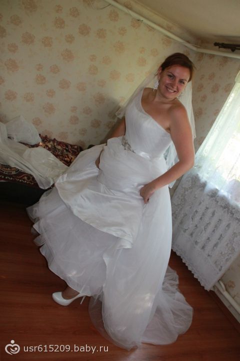 Классное)))Необычное! У меня похожее было, правда я ленту на поясе отпорола и синюю (типа синий цвет верности и тд.) приделала, а муж в синем галстуке в тон был)) И туфли у меня один в один были))) Хороший выбор))