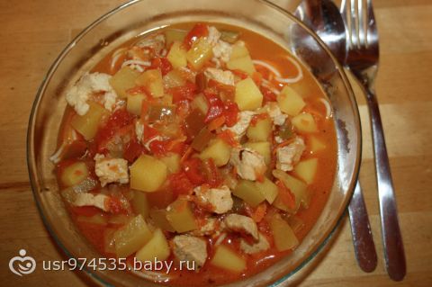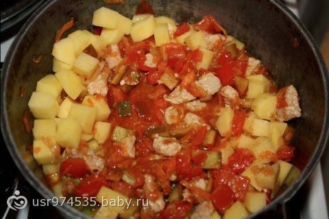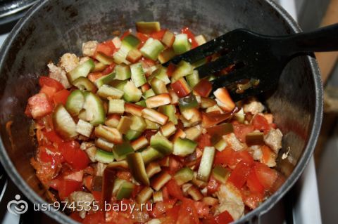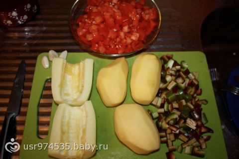 болгарский перец, картошку, немного кабачка (можно было еще немного меньше его, да и с картошечкой я хапанула)