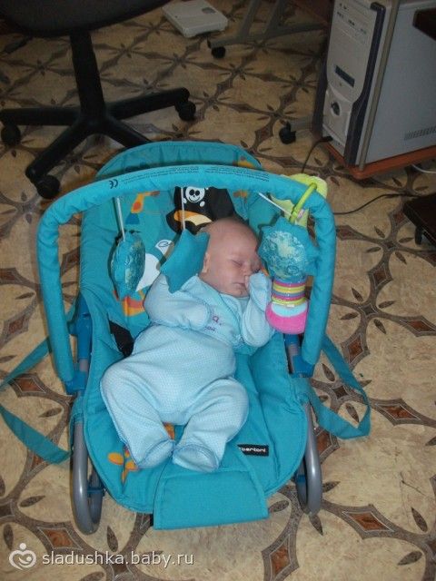 Было еще пару раз в шезлонге, когда за моей работой наблюдал и один раз в кроватке под мобилем, но все это было в 3-4 месяца, сейчас уже не до сна )))