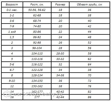 Табличка детских размеров. Я сейчас с её помощью покупаю вещи. Может кому пригодится))