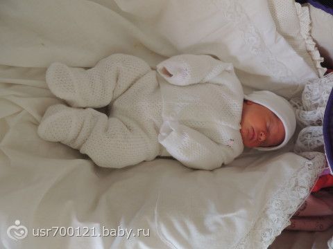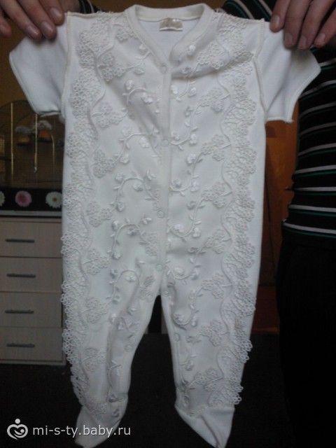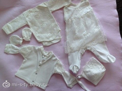 Я купила красивый комплект одежки, сама связала плед ажурный, осталось найти уголок и купить ленту с брошкой. Хочу все сохранить для дочки :)