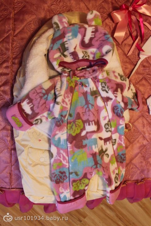 я на выписку брала конверт- комбинезон керри с рук, потом до 4х месяцев в нем гуляли при том что мы рослые, ни сколько не пожалела, а костюмчик я отдельно собирала рублей в 600 обошлось (можно и без него обойтись, купить слипики с закрывашками на ручки + шапочка)