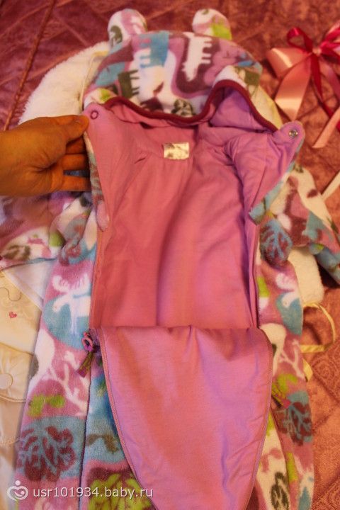 · Комбинезон теплый для прогулок –на тонком синтепоне или тоненьком пуху, с дышащим верхним слоем, капюшоном– одевать осенью, накрывая ребеночка пледом в коляске или зимой, укладывая в меховой конверт