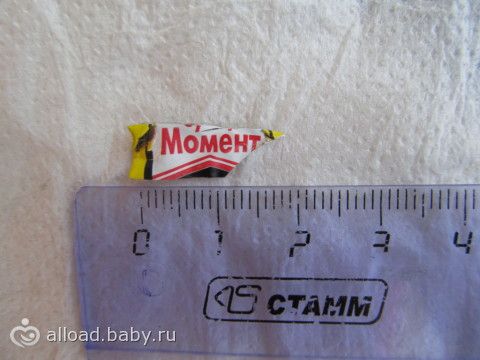 Вот. Это кусок от тюбика клея-момента!!! ОДИН ВАРИАНТ ГДЕ ОНА МОГЛА ЕГО ВЗЯТЬ- В КОМНАТЕ У СТАРШЕЙ!!! У нее вечный бардак! Сама не убирает и меня не пускает — все музыку пишет и всякую хрень «лепит». Вечно у нее бумажки, бусины, пуговицы, фантики и т.д. валяются на полу и столе!
