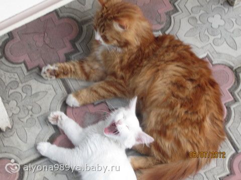 разбудила))обратите внимание у обоих пятнышки возле носа)