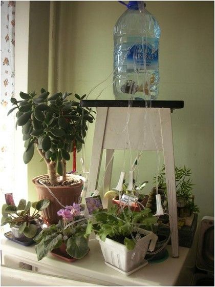 В какой-то год я пробовала подобную конструкцию, как на фото, но либо я не до конца поняла, как это делается правильно, но поставив на ночь, утром я обнаружила залитые доверху цветы и лужу на полу....
