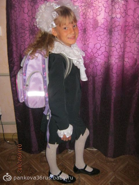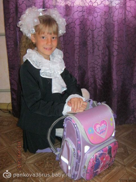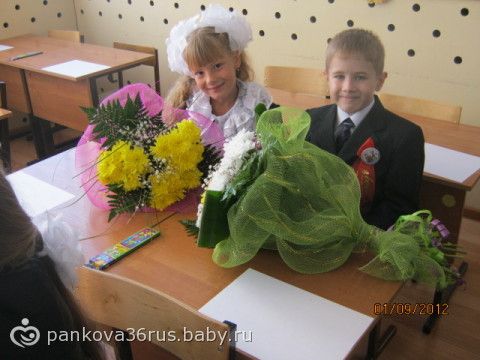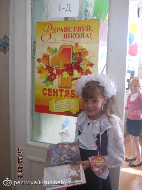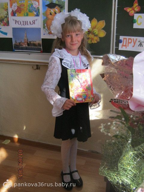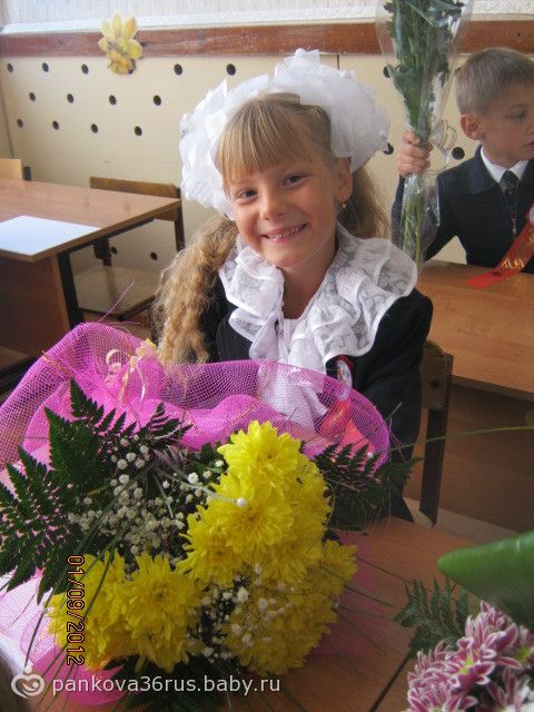 После бурного празднования 10-летия свадьбы собрали себя в кучу и на следующий день повели нашу умницу, нашу красавицу в школу, в первый раз в первый класс! Анастасия была счастлива, мы тоже! Но без приключений не обошлось. В нашем семействе иначе не бывает! Пока дети строем шли с линейки, наша девочка здоровалась со всеми своими друзьями(оказалось, что их там пол-школы) естественно, отстала от своего класса, потерялась! Не на долго!