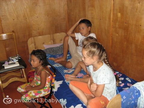 Через 2 дня после приезда у Лизы был День рождения. 4 года! Мы с утра поехали за угощениями для всей детворы базы. Купили 2 торта, таааких вкусных и много конфет. К сожалению, было дождливо, поэтому торт давали «на вынос» и конфетами карманы набивали)) Все были рады! Дечонки-подружки надарили Лизе «драгоценностей» — красивые заколки, блестяшки какие-то, блеск для губ. Самые «близкие» были приглашены в дом на мультики и игры.
