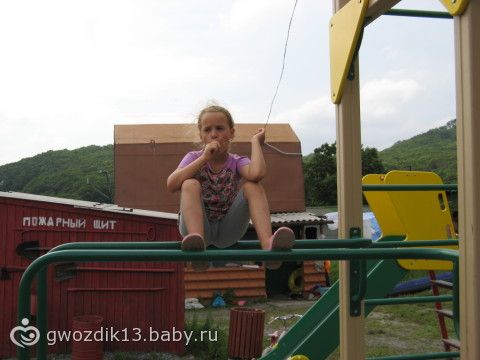 В общем отдых начался! Дети целый день на воздухе — пока я готовлю, бегают по территории с другими детьми ( я их как-то подсчитала ради интереса — оказалось более 20 чел!), лазают по спортивному комплексу, играют. А потом мы идём на море. И ничего, что не всегда было солнце, мы и в облачную погоду прекрасно загорали, главное что тепло было и море чистое.