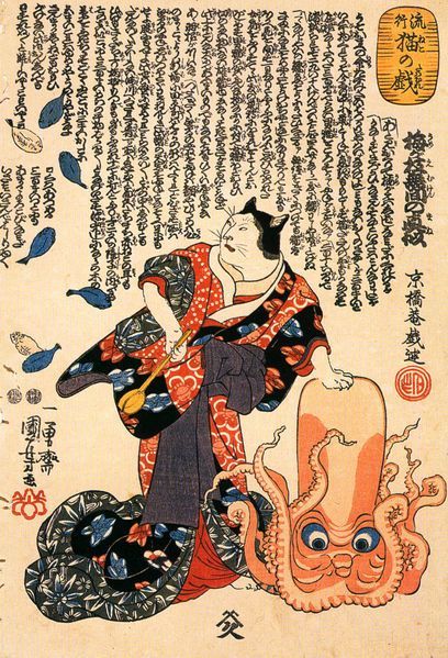 Ну и еще одна картина чтобы уравновесить предыдущий ужас. Тоже не знаю, что это за кошка и что за хентайная осьминожка, но довольно оба довольно милые. Даже стыдно их помещать в категорию «Ужастики.»