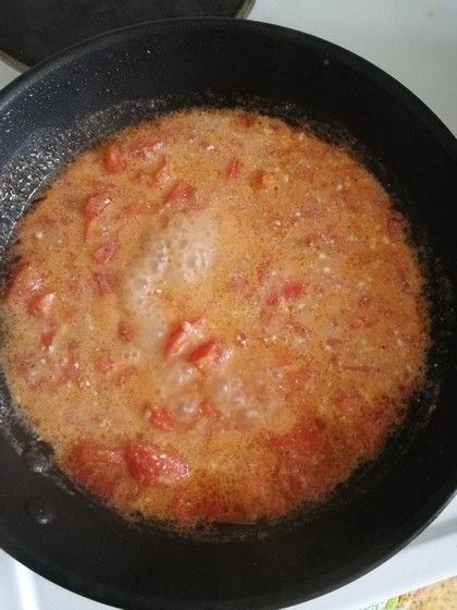 Налить немного воды (у меня наверное много) и сливки (сметану или молоко что есть, думаю вкусно будет и так и эдак) и томатную пасту ( я добавила кетчуп немного, пикантный привкус дало)
