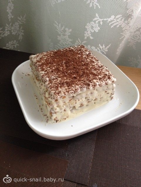 Приготовление: 1. Сметану взбиваем с сахаром, добавляем порезанные кружками бананы. 2. Печенье вымачиваем предварительно в молоке (всего пару секунд), после чего начинаем с него выкладывание слоями торта. 3. На блюдо кладем слой печенья, сверху сметану с бананами, еще такой же слой, и так сколько получится слоев. 4. Украшаем тортик натертым шоколадом, а также по желанию порезанными кружочками или кубиками киви, клубникой или апельсином. 5. Ставим в холодильник на полчаса. Потом подаем на стол.