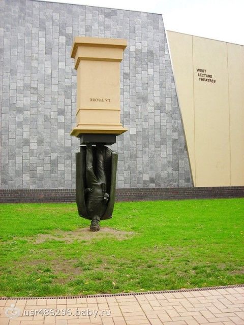 Автор памятника Чарлзу Ля Троубу решил продемонстрировать, насколько бессмысленным может быть возвеличение общественных деятелей до пьедестала. Потому он поставил статую на голову. Мельбурн, Австралия