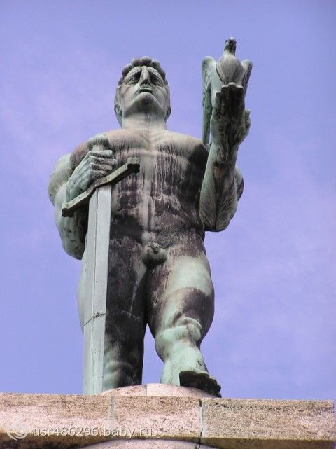 Памятник Победителю — это бронзовый подтянутый юноша, которого по соображениям морали убрали куда подальше и куда повыше, а именно на смотровую площадку крепости в Калемегдане. Белград, Сербия