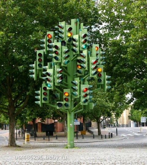 Сверкающее огнями дерево-светофор символизирует бурную жизнь мегаполиса и веселит пешеходов и проезжающих автомобилистов. Лондон, Великобритания