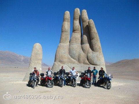 Исполинская рука, которая торчит из песка в пустыне Атакама. Антофагаста, Чили