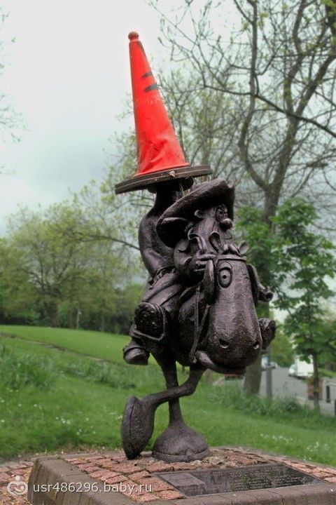 Мультяшный герой Лоби Доссер нередко «пародирует» герцога Веллингтонского, так же получая дорожный конус в качестве головного убора. Глазго, Великобритания