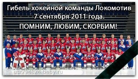 Год назад разбился самолет с хокейной командой «Локомотив» эта трагедия потрясла многих и болельщиков и простых людей, сама я стала болеть только несколько лет назад и помню как плакала когда услышала эту новость было очень жаль ребят молодые, красивые парни у многих остались семьи и дети их жизнь трагически оборвалась. В команде были воспитанники нашей хокейной школы и очень любимый нами Ян Марек он долгое время играл у нас в команде. Пусть земля им будет пухом.. .