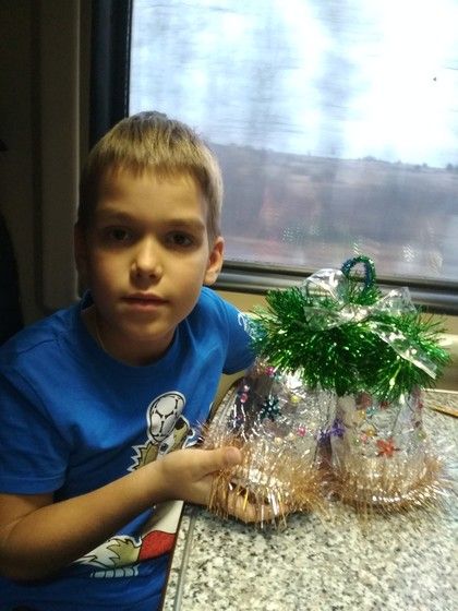 Сдать колокольчики я предложила Диме таким же способом, как и для конкурса игрушек в Великом Устюге.