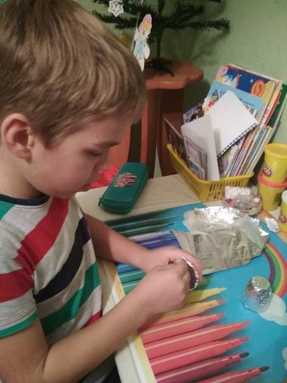 В этот же день я сделала Диме звезду на ёлочку из бумаги.