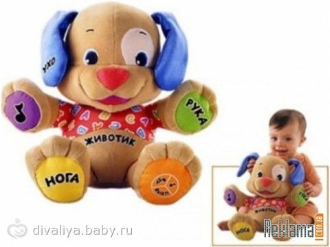 — Развивающий щеночек( блин аж в Волжский за ним пришлось ехать, единтвенный найденный нами в Волгограде оказался бракованным). С начала с час сидела играла, а потом что- то не очень. Думаю по тому что он слишком много болтает, навязчивый дружочек,, а Милочка у нас девочка сдержанная :))