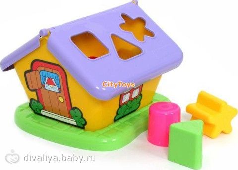 — ну и сортер самый обыкновенный недорогой. Выбирала где фигуры по крупнее, цвета поярче и формы попроще… Играет с удовольствием! Не всегда правда попадает, но прям старается тыкает..