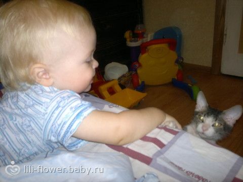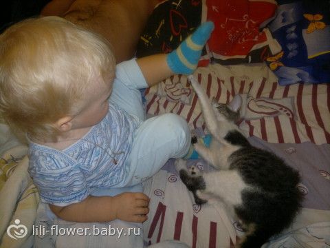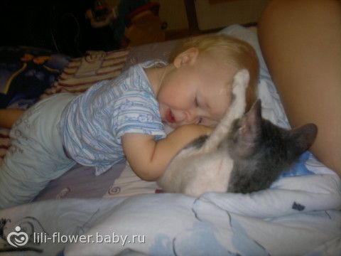 только не пишите, что бедный кись)) у них все по взаимному согласию. другие кошки ребенка вообще не подпускают