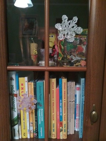 Когда они высохли повесил на дверки шкафа. Не скажу, что мне они понравились, нужен прям густой клей, или ещё лучше клей с блёстками, чтоб они не так сильно растекались.