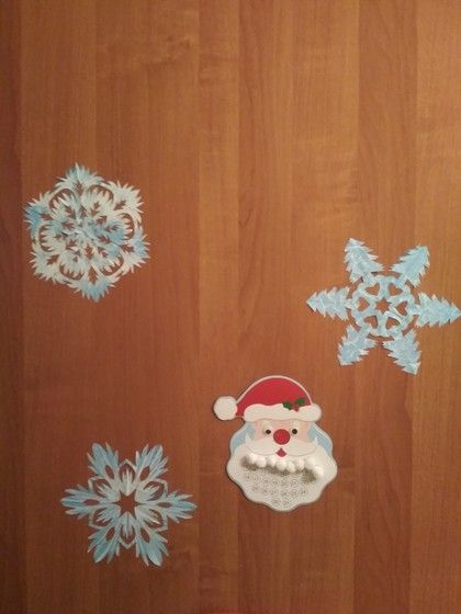 Красивые снежинки получились! Я смотрю вы бороду с цифры 1 клеите. А мы с 31 начали. Чтобы видно было, сколько дней осталось. И чтобы диски сверху накладывать, так удобнее.