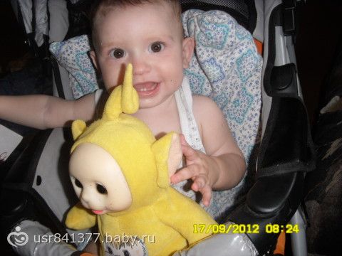 Ух ты какой у него раритет — это я про телепузика. А у нас салатовый и маленький. А малыш чудесный.
